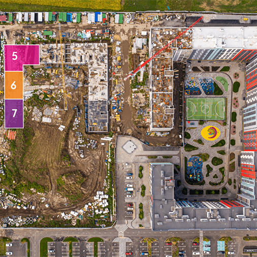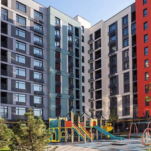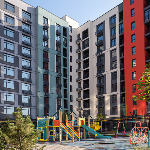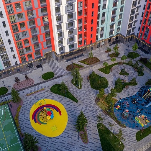 - закрита територія з картковою системою входу/виходу, концепція «двір без авто»
