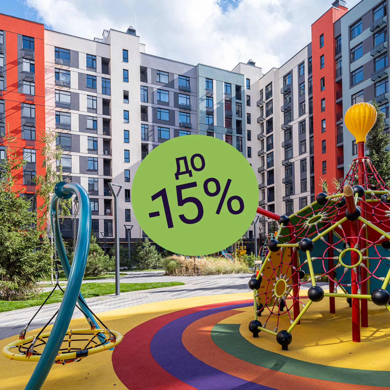 Знижка до -15% на обмежену кількість квартир із єОселя або при 100% оплаті чи розтермінуванні.